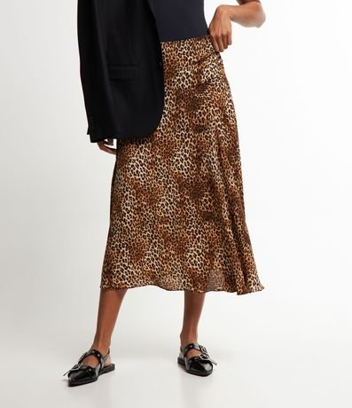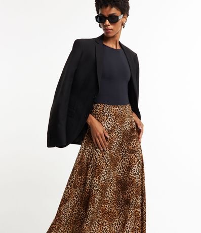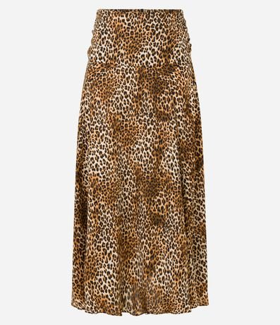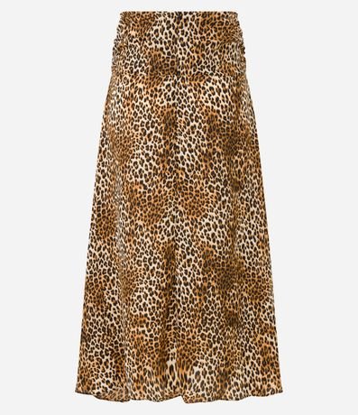 Saia Midi Evasê em Crepe com Estampa Animal Print Onça