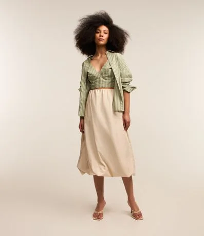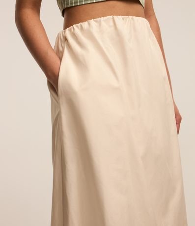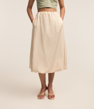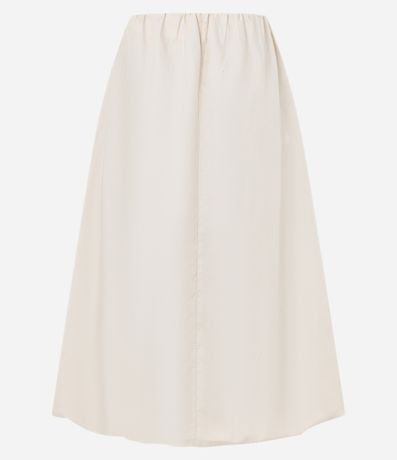Ref: Saia midi, evasê, confeccionada em cupro e com cós elástico.