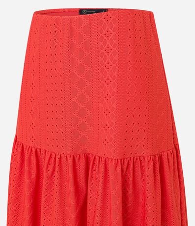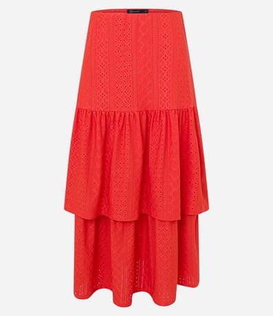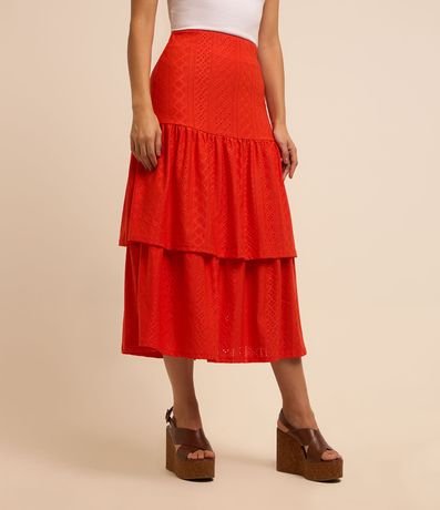 Ref: Saia feminina, confeccionada em laise, no modelo midi, com textura e babados na barra.