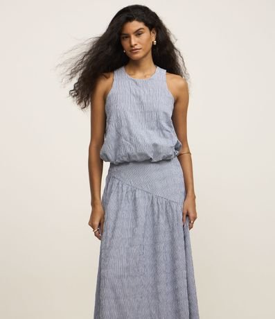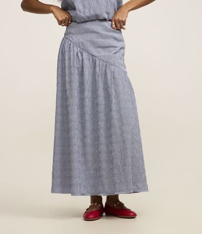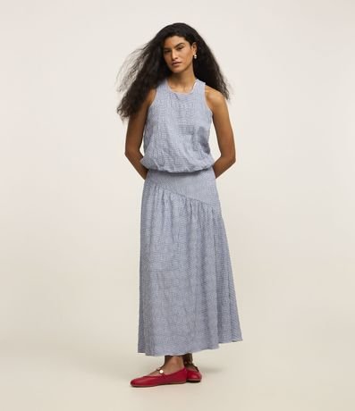 Ref: Saia midi evasê, confeccionada em viscose mais sustentável com cós na diagonal e estampa xadrez vichy.