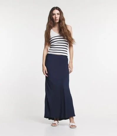Ref: Saia evasê, abaixo dos joelhos, em viscose.