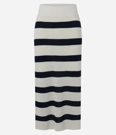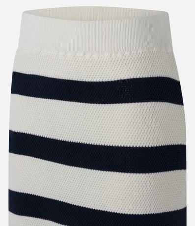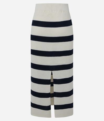 Saia Midi Listrada em Tricô com Fenda na Barra