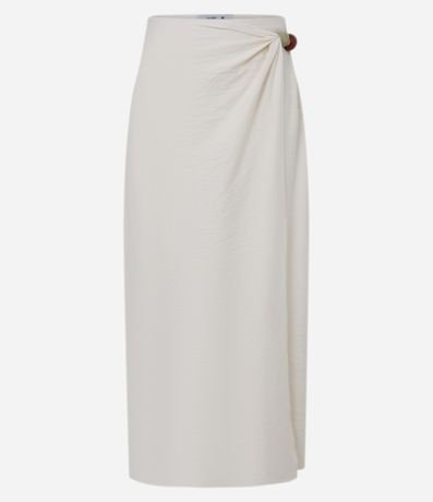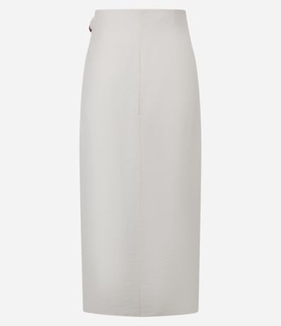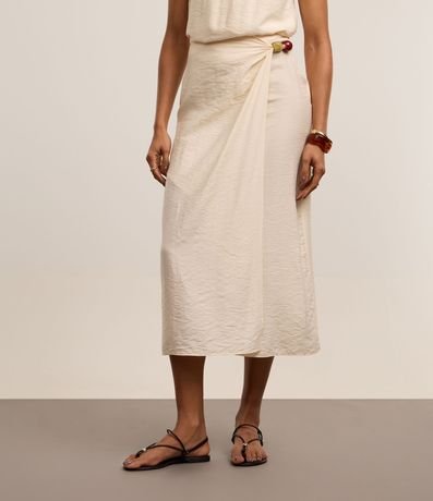 Saia Midi Reta em Crepe com Transpasse e Aviamento de Bolotas na Lateral