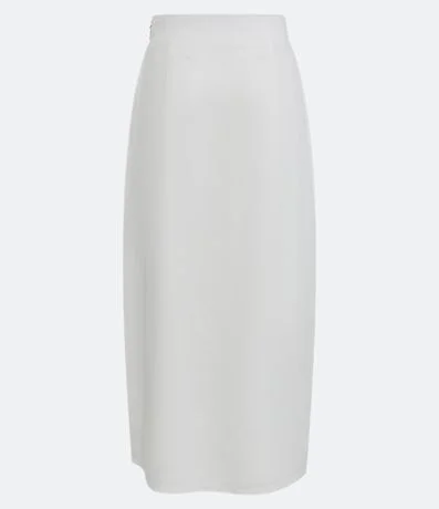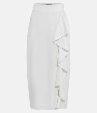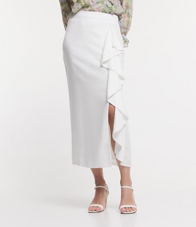 Saia Midi Reta em Linho com Fenda e Babado Aplicado