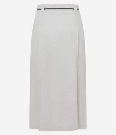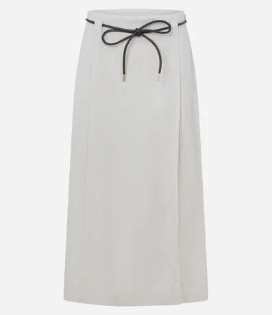 Ref: Saia midi feminina em viscose certificada com modelagem reta, fenda lateral discreta e passantes aplicados. Acompanha cintinho fino em com ponteiras, cós estruturado e tecido de textura leve, garantindo caimento natural e fácil combinação no dia a dia.