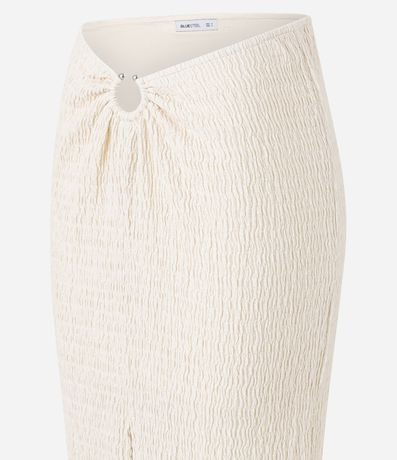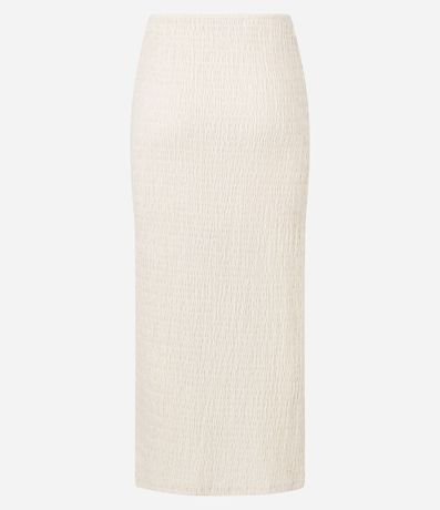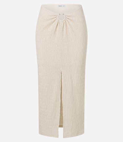 Ref: Saia midi confeccionada em algodão com textura e aviamento no cós.