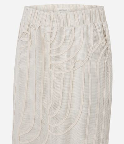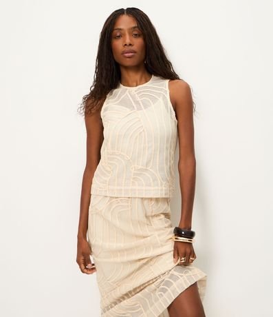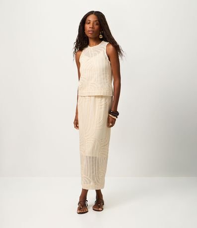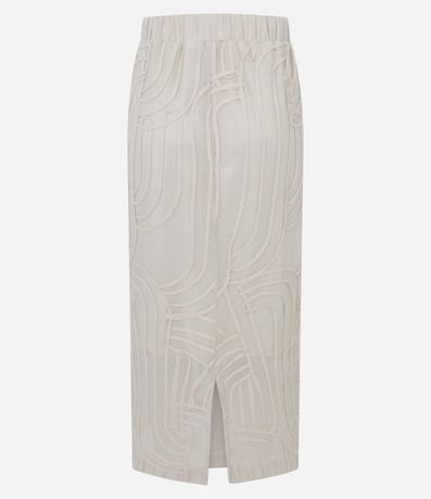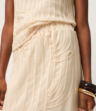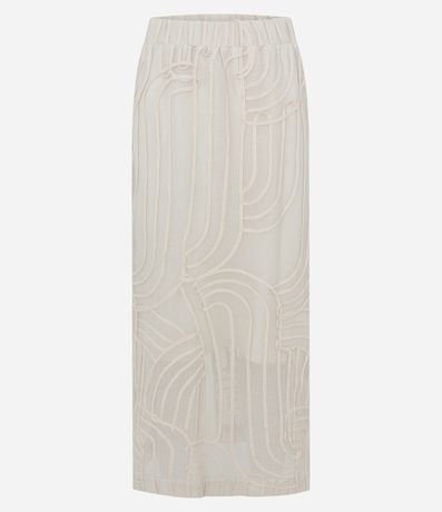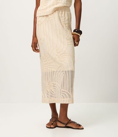 Ref: Saia confeccionada em renda texturizada com desenho vazado que adiciona elegância ao visual. Possui cós confortável, forro interno e comprimento new midi que alonga a silhueta.