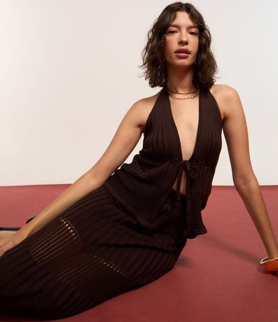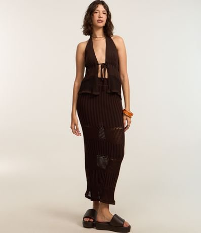 Ref: Saia new midi, justinha confeccionada em tricô texturizado com cós elástico e sem estampa.