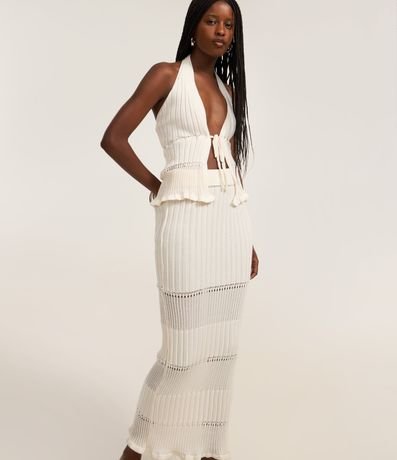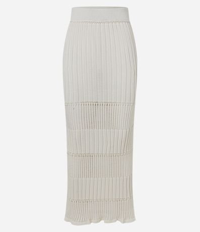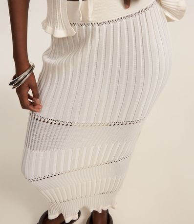 Saia new midi, justinha confeccionada em tricô texturizado com cós elástico e sem estampa.