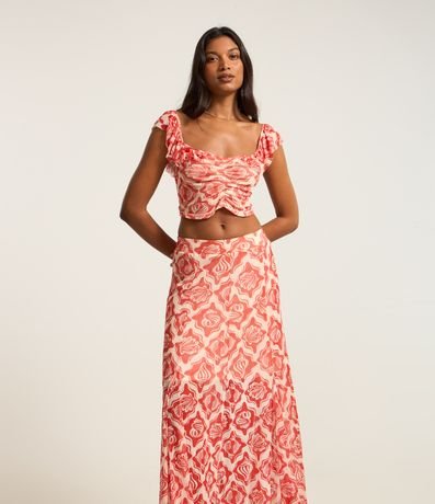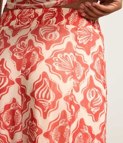 Ref: Saia feminina confeccionada em tule no modelo new midi, cós fixo com elástico e estampa bicolor do fundo do mar com imagens de conchas, peixes.