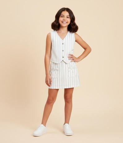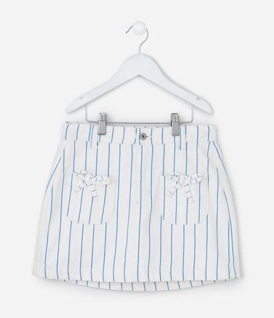 Saia Regular Infantil em Sarja com Estampa de Listras e Lacinho - Tam 5 a 14 Anos