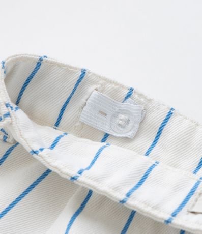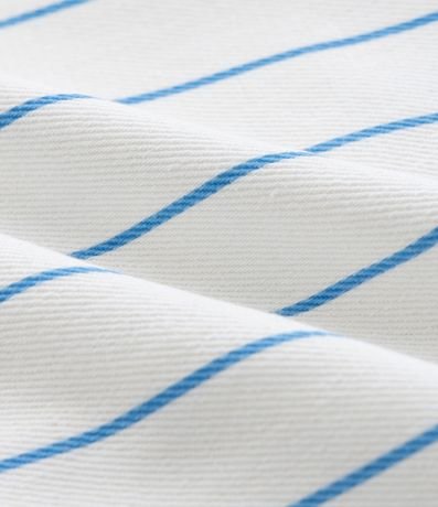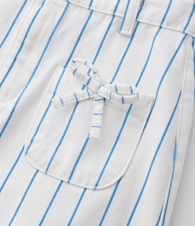 Saia infantil confeccionada em sarja mais sustentável, no modelo regular. Possui cós com passante, ajuste interno, fechamento tradicional, bolsos frontais, com aplicação de lacinhos e estampa listrada.