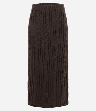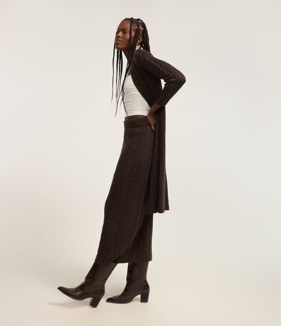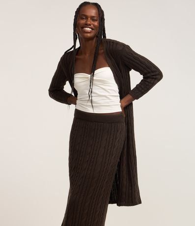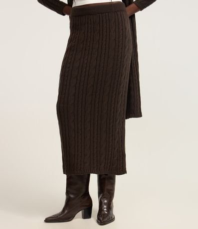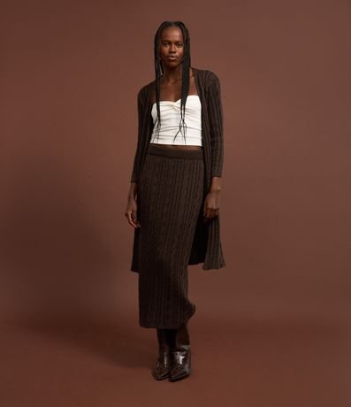Saia Reta Alongada em Tricô com Mix de Pontos