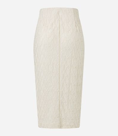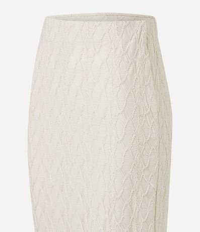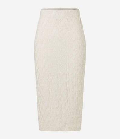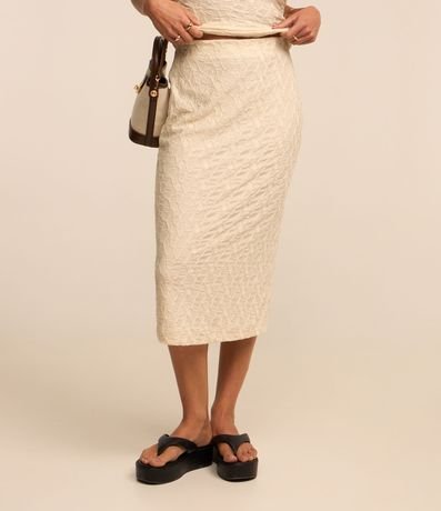 Saia reta feminina, com cós elástico e superfície texturizada.