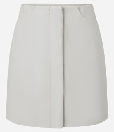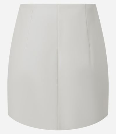 Ref: Saia reta curta, confeccionada em material sintético, com vista oculta, bolsos frontais e pences. Peça com comprimento acima dos joelhos.