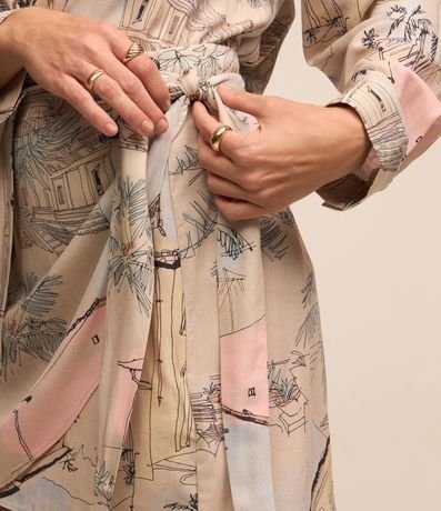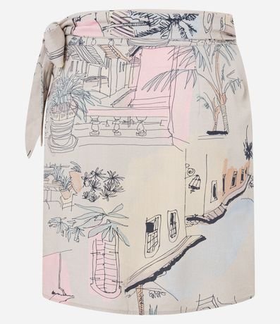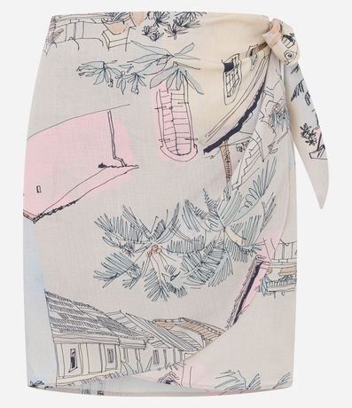 Ref: Saia reta feminina, confeccionada em viscose, com amarração lateral no cós e estampa paisagem.
