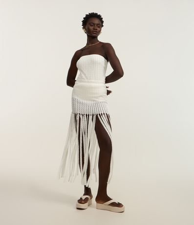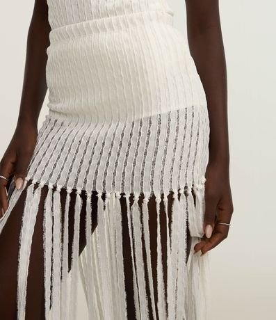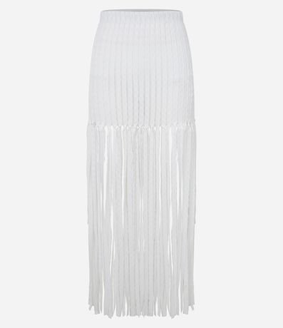 Saia Reta Long Midi Texturizada de Franjas