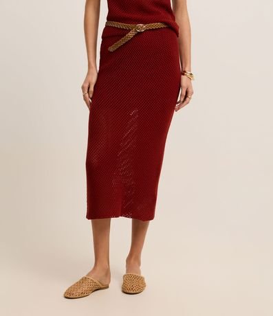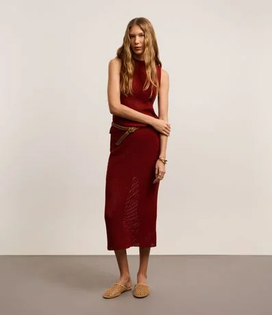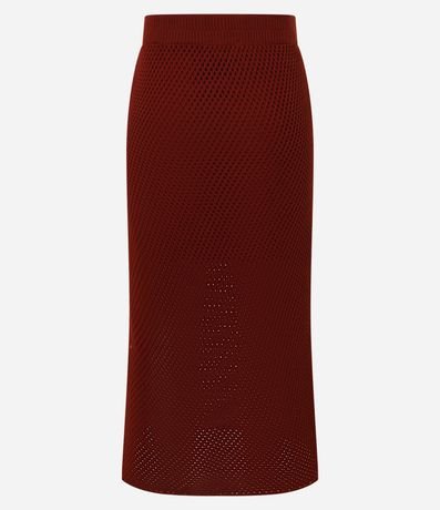 Saia Reta Longa em Tricô com Ponto Vazado