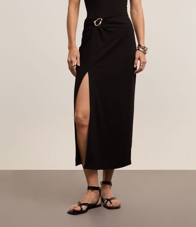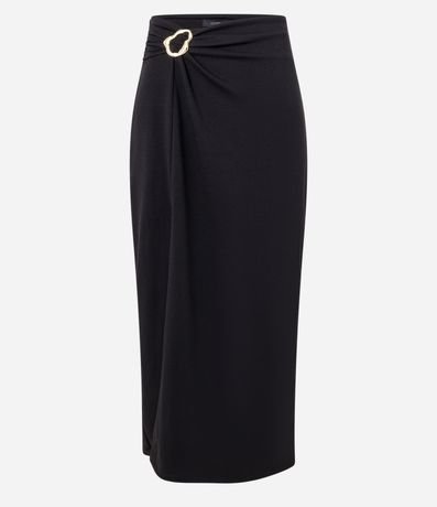 Ref: Saia reta midi com cintura média e fivela metalizada com aspecto martelado. Este produto foi fabricado através de processos mais sustentáveis, adotando boas práticas ambientais.