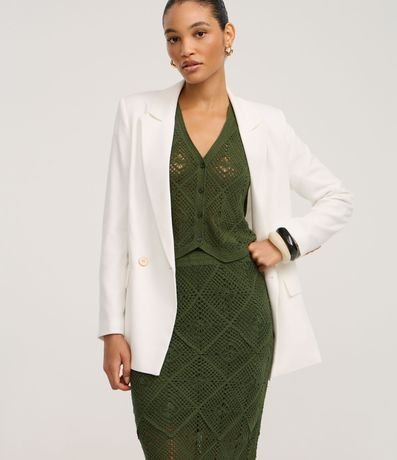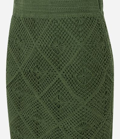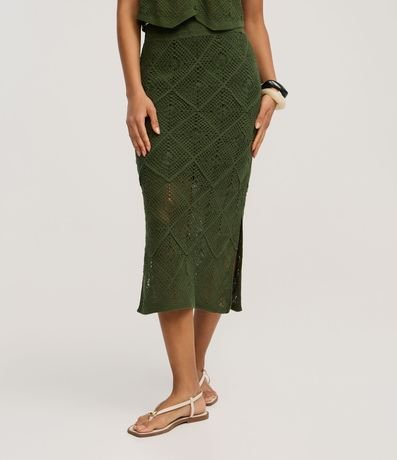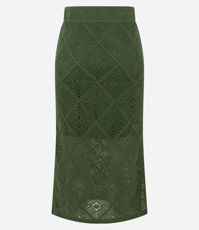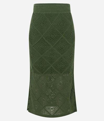 Ref: Saia reta midi, confeccionada em tricô com mix de pontos em efeito crochê, com elástico no cós. Peça com forro. Este produto possui algodão certificado em sua composição, sendo ambientalmente mais responsável.
