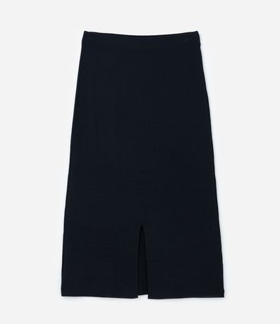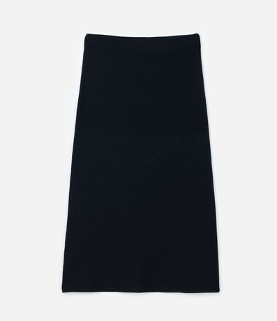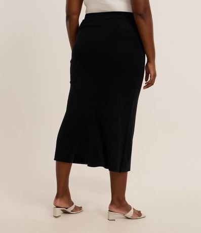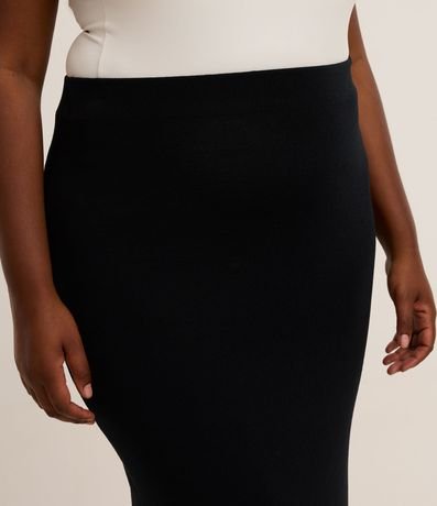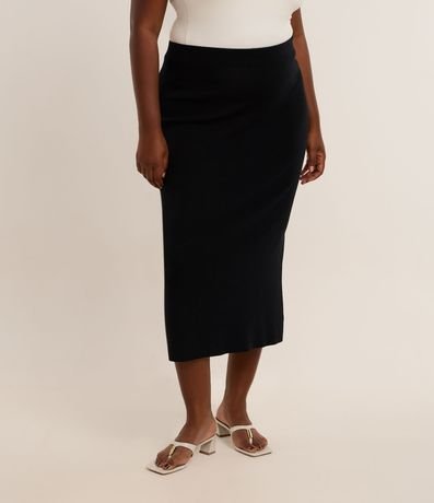 Ref: Saia feminina Curve & Plus Size confeccionada em tricô de viscose certificada, peça no comprimento midi com cós elástico e no modelo reta.