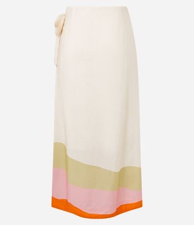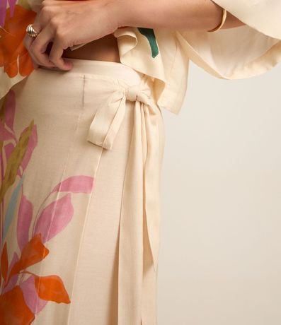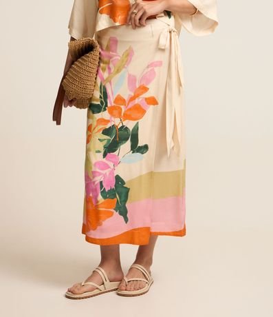 Ref: Saia feminina confeccionada em viscose mais sustentável, detalhe de laço no cós lateral. No modelo midi reta peça contem estampa floral colorida.