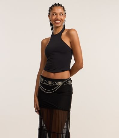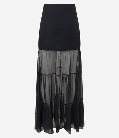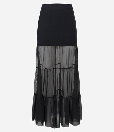 Ref: Saia roda longa, confeccionada em tule, com recortes franzidos. Peça com forro.