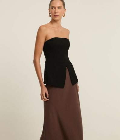 Saia longa confeccionada em cupro composto por viscose certificada. A peça tem caimento slip e cós alfaiatado.