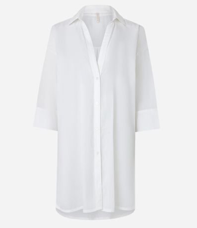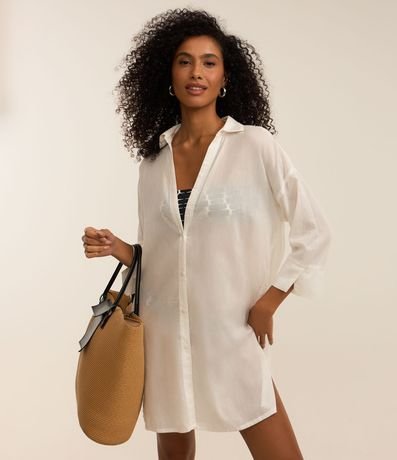 Ref: Saída de praia bata chemise confeccionada em voal com colarinho na gola, mangas longas e botões frontais.