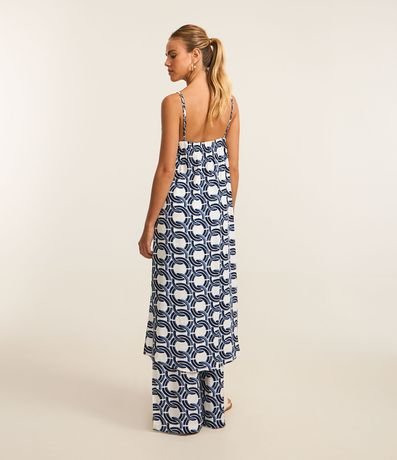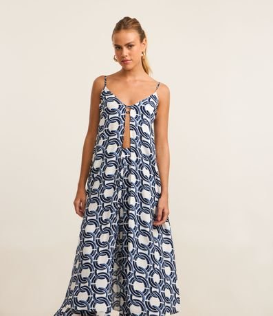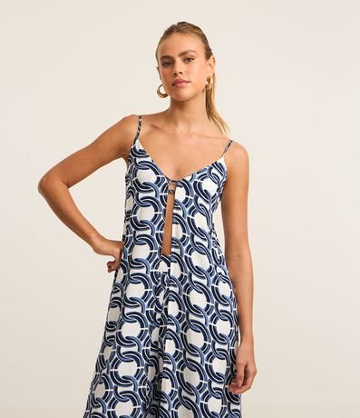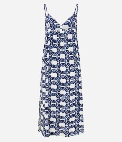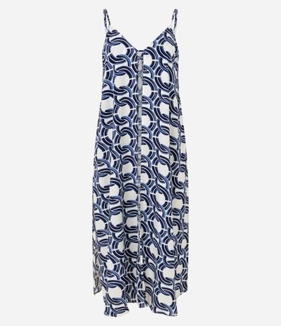 Ref: Saida de praia de modelo bata, confeccionada em viscose mais sustentável. Possui alças finas, abertura frontal e estampa de elos.