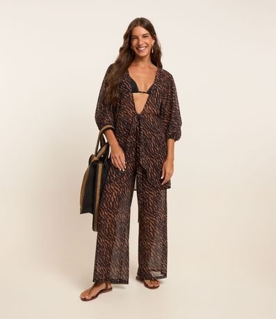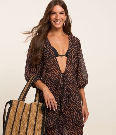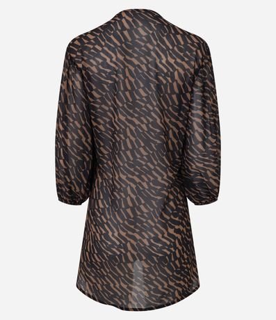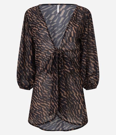 Ref: Saída de praia bata confeccionada em chiffon com estampa botânica e amarração