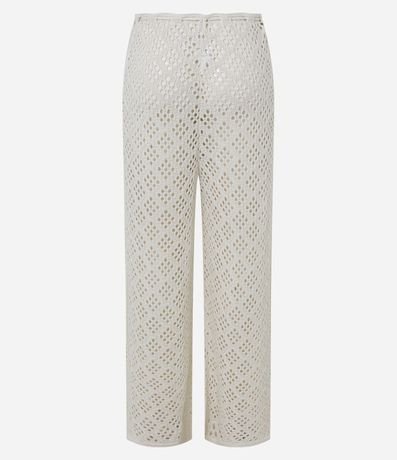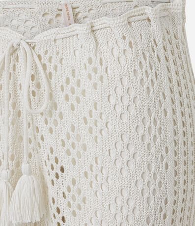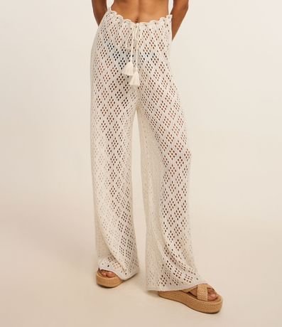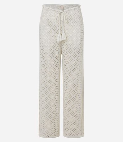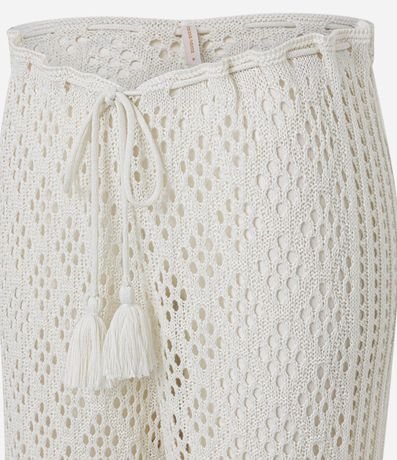 Ref: Saída de praia confeccionada em tricô com efeito crochê. A calça tem amarração na cintura e tassel.