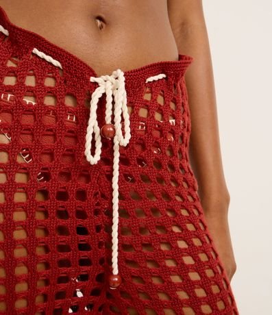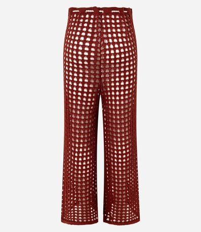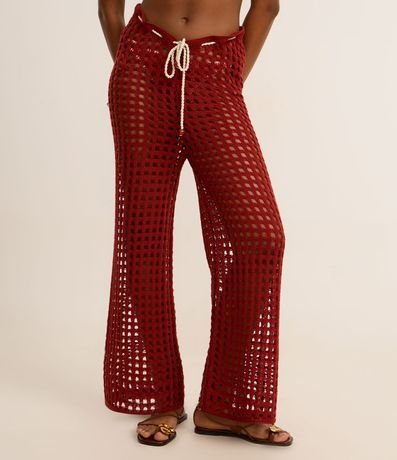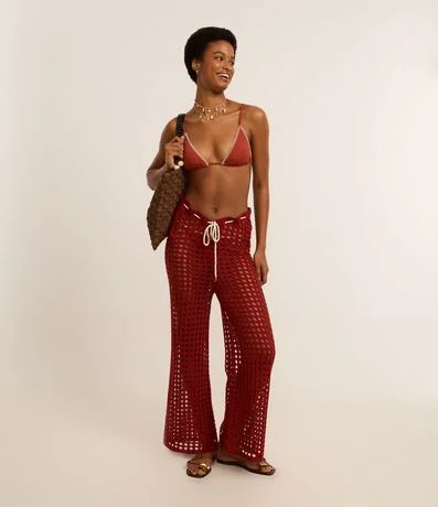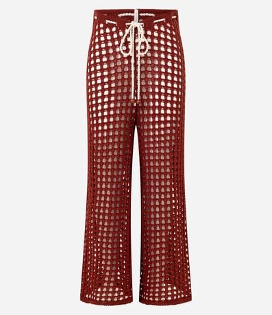 Ref: Saída de praia de crochê. A calça tem amarração na cintura com cordão contrastante.