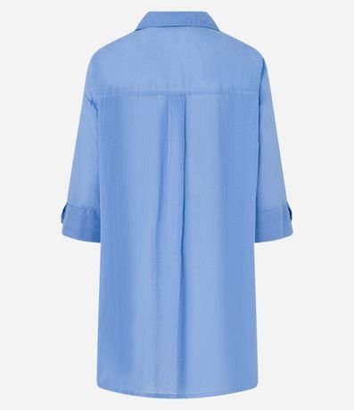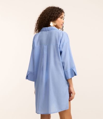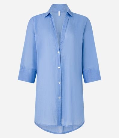 Ref: Saída de praia feminina, de modelo camisa, com decote V e mangas 3/4. Sem estampa, possui prega nas costas e abotoamento frontal. A peça confeccionada em voal de algodão é leve e fresca.