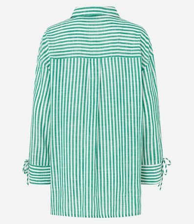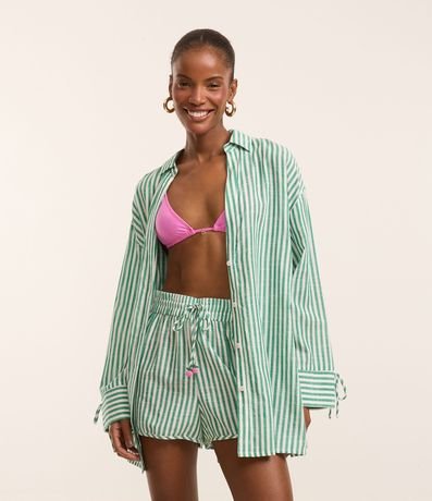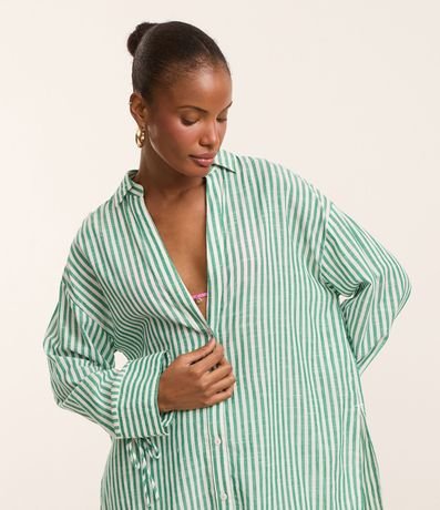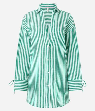 Ref: Saída de praia feminina confeccionada em tricoline de algodão mais sustentável. A chemise tem listras verticais em fio tinto, gola camisa, decote V, abotoamento com botões perolados e mangas longas com amarração nos punhos.