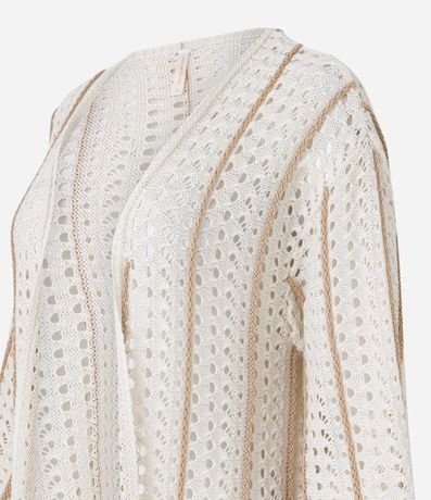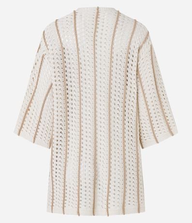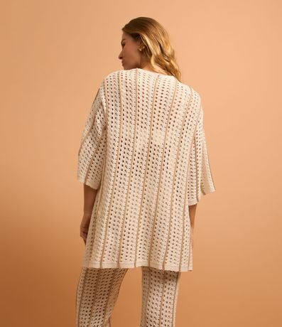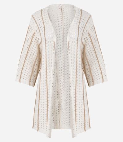 Ref: Saída de praia kimono feminino, com efeito crochê, abertura frontal, mangas longas e textura vazada.