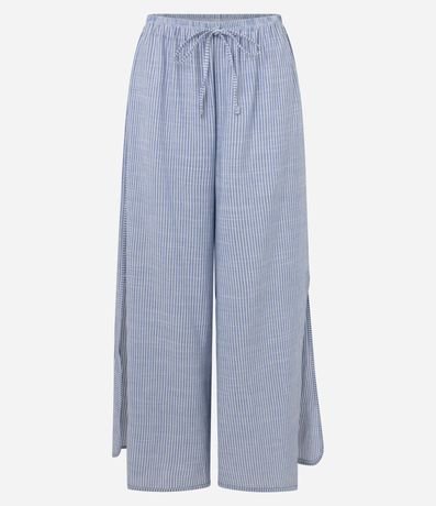 Ref: Saída de praia. modelo calça, confeccionada em viscose, com elástico e amarração no cós, fendas laterais e listras de fios tintos. Este produto possui viscose certificada em sua composição, além de ter sido produzido através de processos mais sustentáveis, sendo ambientalmente mais responsável.