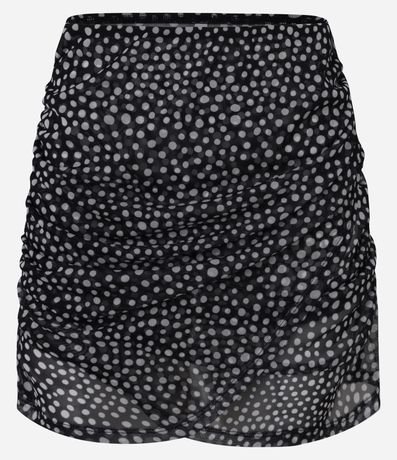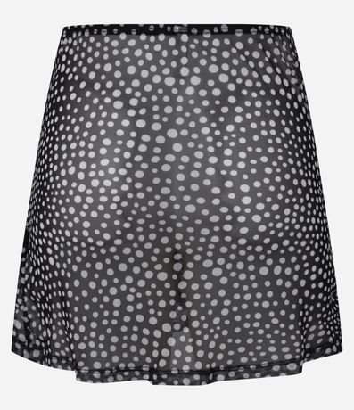 Saída de Praia Saia com Tule Estampado de Poá e Franzido