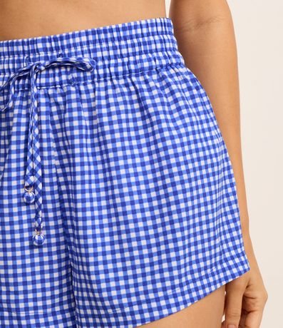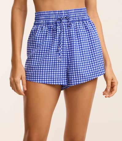 Ref: Saída de praia confeccionada em chiffon estampado de xadrez vichy. O short tem cintura alta com elástico e amarração. Detalhe de bolinha forrado no final da cordinha - um mimo!