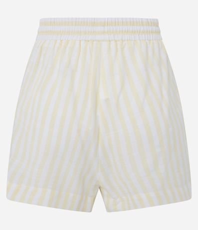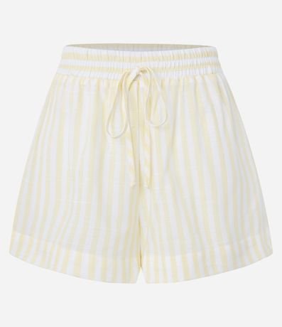 Ref: Saída de praia, modelo shortinho, confeccionado em viscose e algodão mais sustentável. Modelo possui elástico e amarração na cintura além de listras verticais em fios tintos.