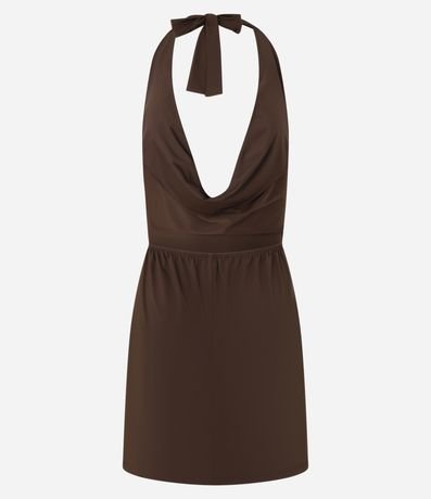 Ref: Saída de praia feminina de modelo vestido curto, frente única com amarração no pescoço e decote degagê.