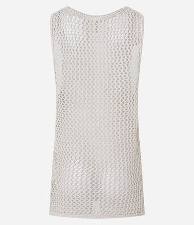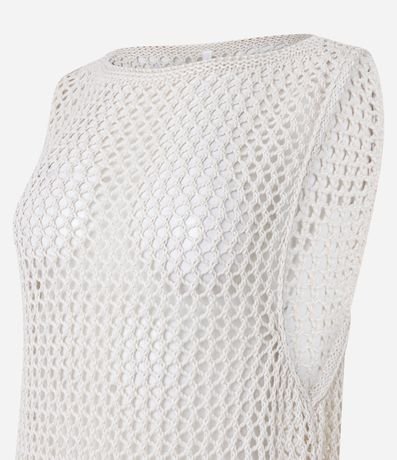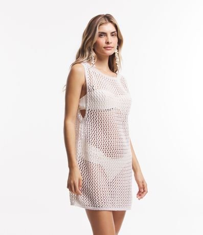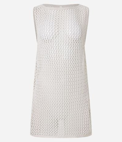 Ref: Saída de praia em modelo vestido, confeccionada em tricot, e com decote redondo e sem mangas.
