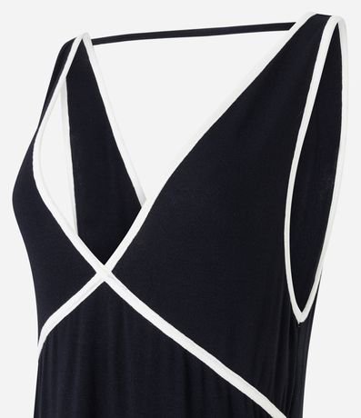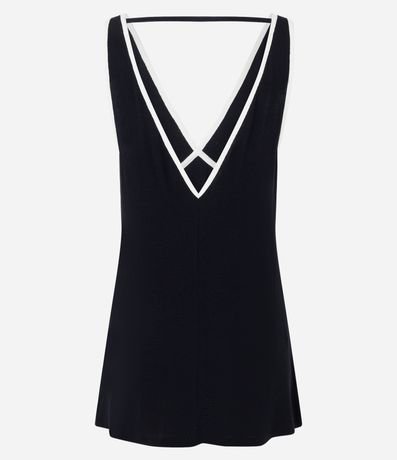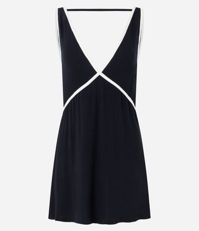 Ref: Saída de praia confeccionada em viscose sem estampa. O vestido tem comprimento curto, decote V e vieses contrastantes.