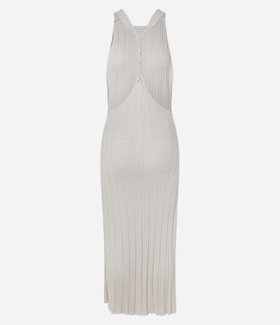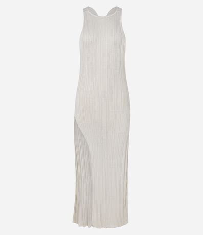 Ref: Saída de praia, modelo vestido longo, confeccionado em tecido texturizado. Peça sem mangas, com gola redonda e alça trançada nas costas.