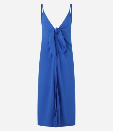 Saída de praia vestido alongado, sem mangas, confeccionado em viscose mais sustentável com linho. A peça possui decote V com laço de nó para amarração além de alcinhas finas.