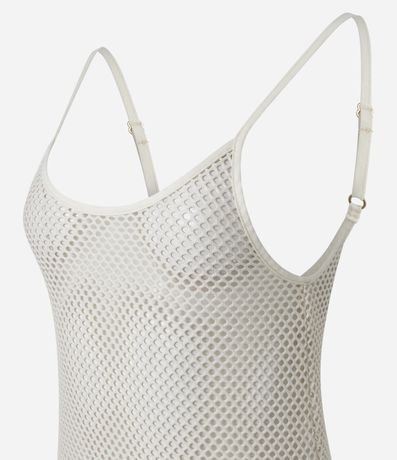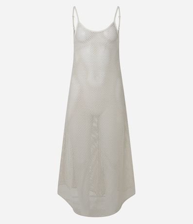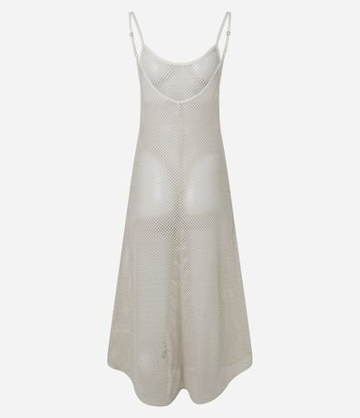 Saída de praia de crochê, modelo vestido longo, com alças finas reguláveis.
