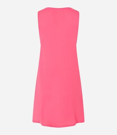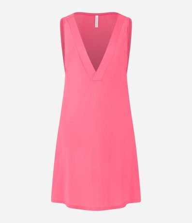 Saída de praia vestido confeccionada em crepe, com gola V, sem mangas, sem estampa. Por não ter mangas e possuir alças largas, esta saída de praia, estilo vestidinho, remete a uma regata alongada.
