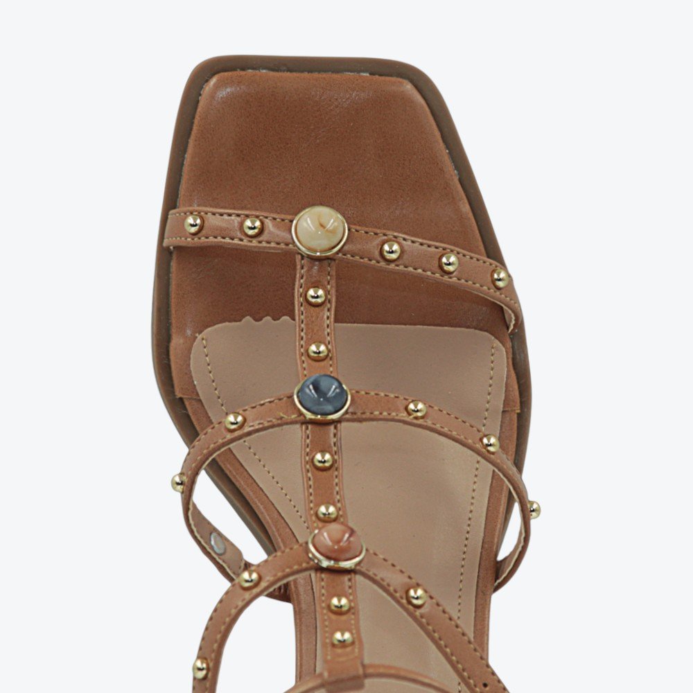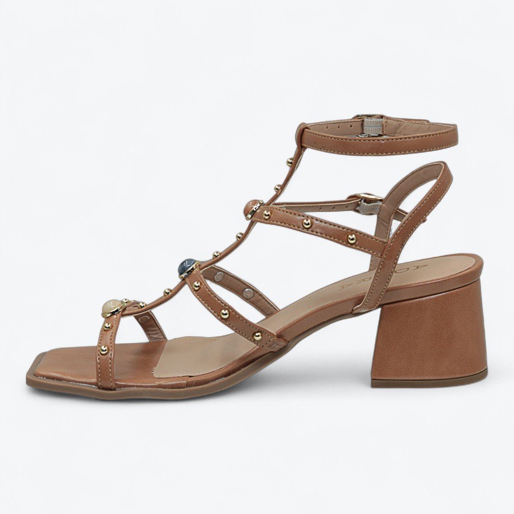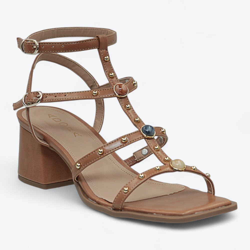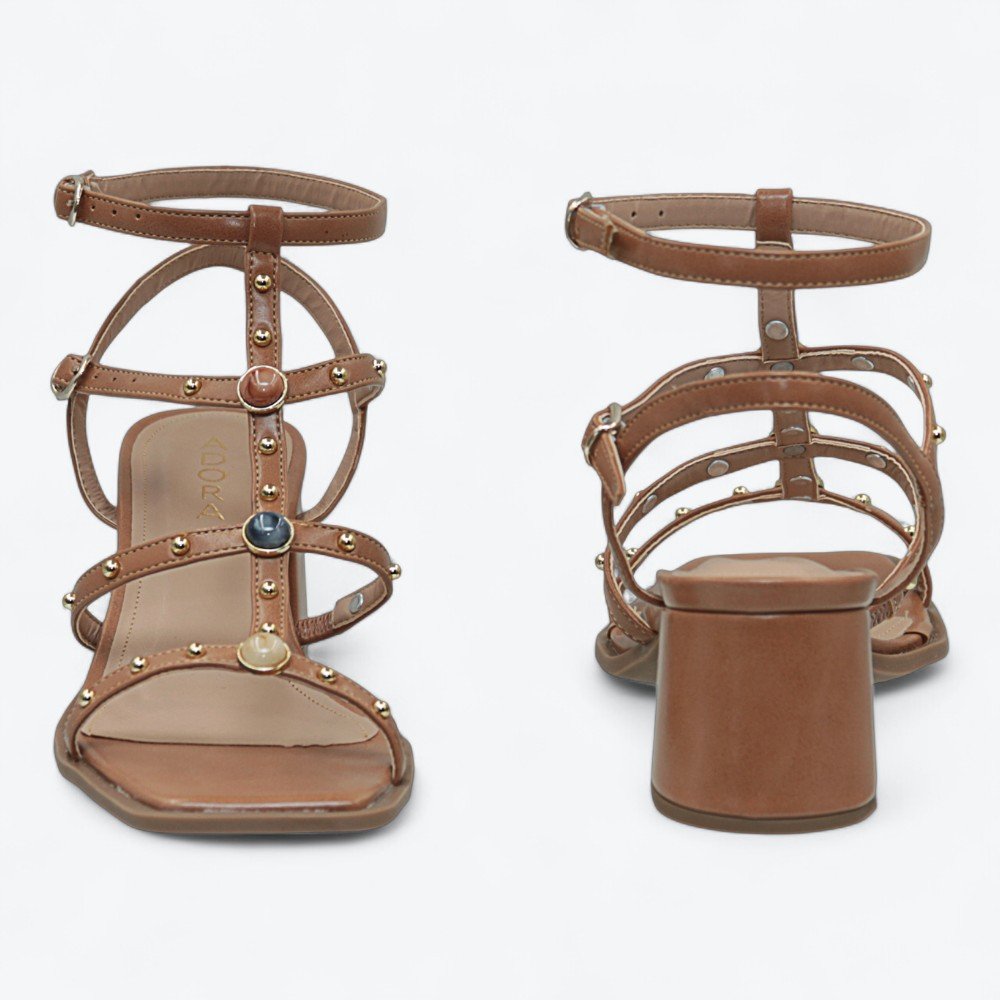 Ref: Sandália feminina Adora, perfeita para quem ama unir estilo e conforto no dia a dia ou em ocasiões especiais. O modelo traz tiras finas com detalhes em studs metalizados e aplicações arredondadas que dão um charme moderno ao peito do pé, valorizando qualquer look do jeans àquele vestido mais arrumado.