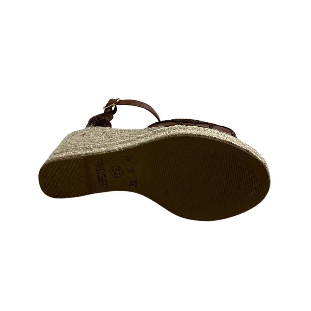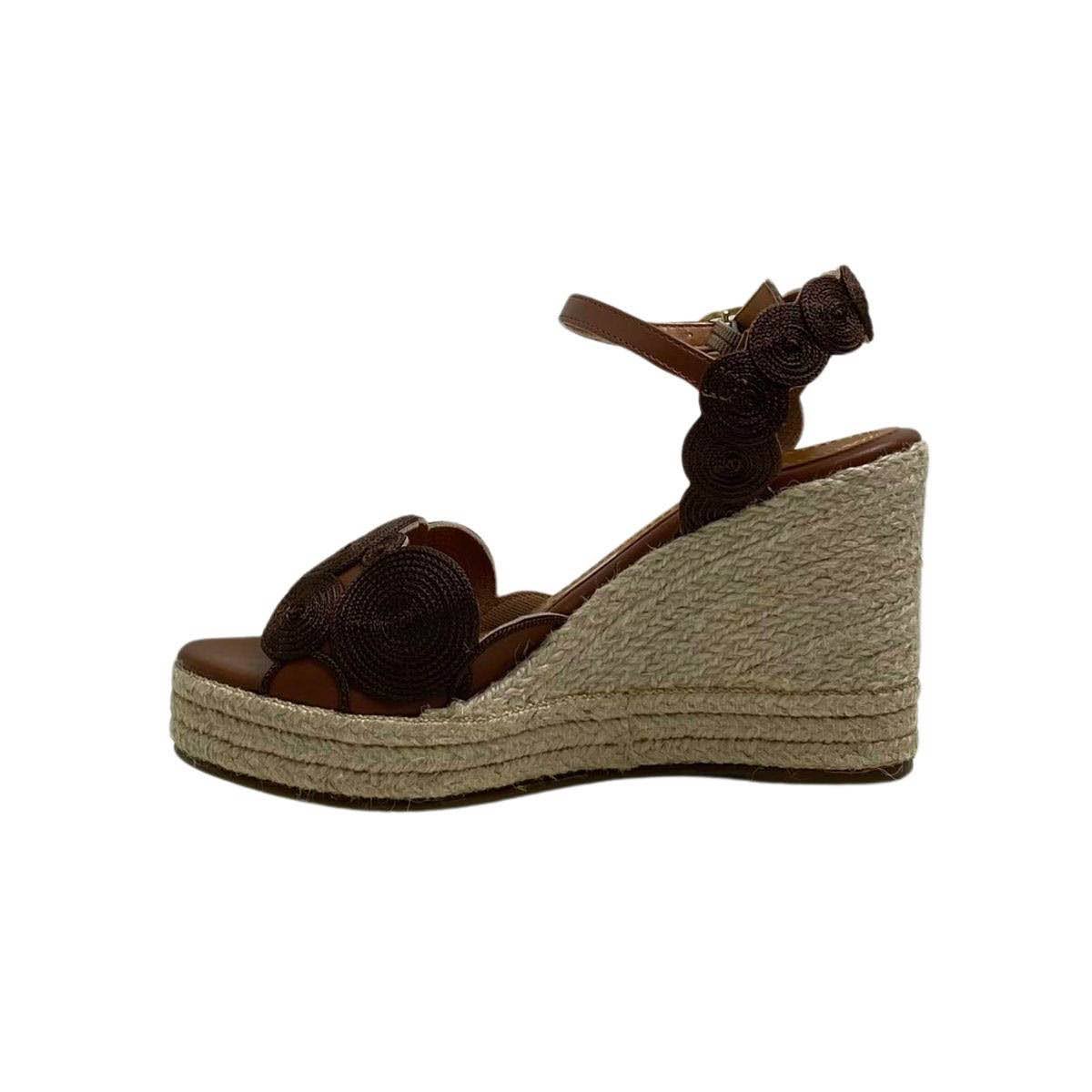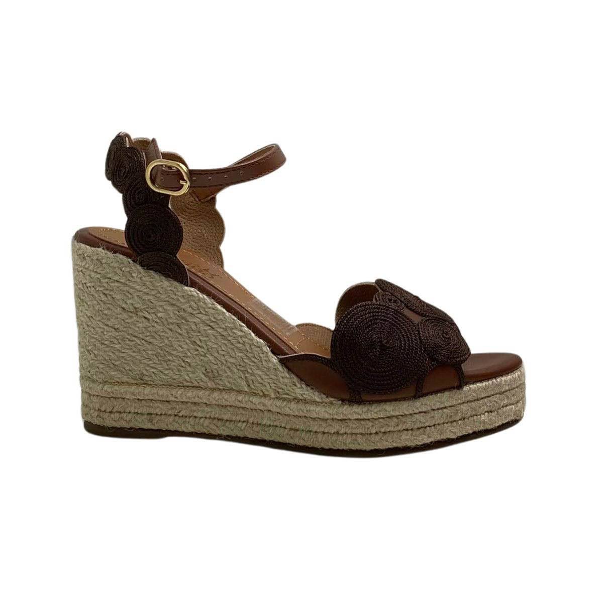 Ref: Sandália Anabela Valentina Feminina 502125 Marrom Escuro. A Sandália Anabela Bordada Valentina Flats é a escolha ideal para quem busca combinar altura, conforto e muito estilo, com um toque de charme artesanal. O salto anabela de 10 cm de altura proporciona uma elevação elegante e é adornado com corda (detalhe rústico espadrille), seguindo as tendências da moda. O cabedal bordado adiciona um charme artesanal e sofisticado à peça.