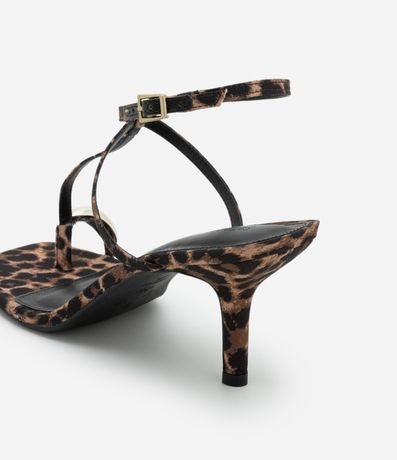 Sandália Animal Print com Salto Fino e Dedeira em Metal